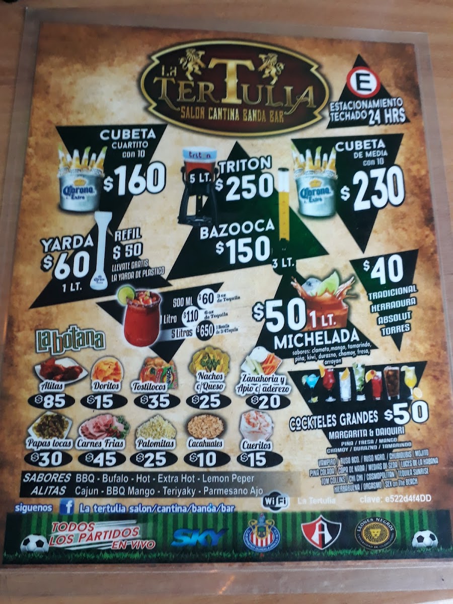 The menu at Salón Cantina Bar La Tertulia Gdl leaves a strong impression as a well-rounded selection that balances classic cantina drinks with satisfying traditional bites, making it an easy place to settle in and enjoy the atmosphere. The drink options are straightforward and affordable, with choices like Ultra and Corona de Medio 35 standing out as reliable, refreshing companions to the food. On the dining side, the Carnes Frías offer a flavorful, shareable option that fits perfectly with the bar setting, providing a savory contrast to the cold beers. Overall, the menu feels intentionally simple but well-suited to the venue’s social, relaxed vibe, focusing on familiar flavors, good portions, and reasonable prices rather than overly complex dishes, which ultimately enhances the experience and makes it a place you’d return to for an easy, enjoyable night out.